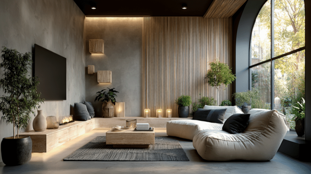 Öneri: Dikey çizgili ahşap paneller hem mekânı yüksek gösterir hem de modern bir izlenim yaratır.