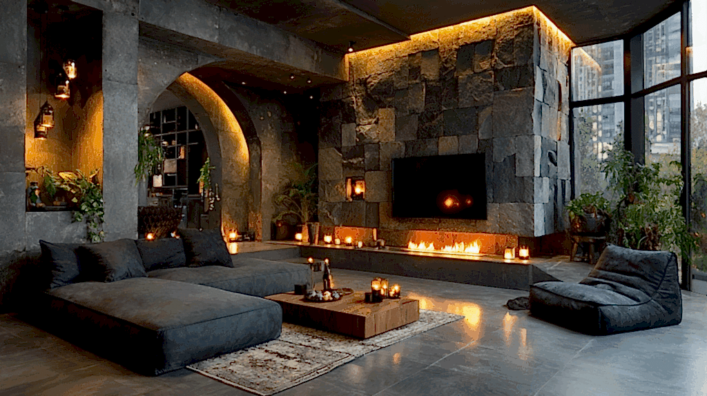 Taş kaplama TV arkası, doğallık hissi verirken mekâna derinlik kazandırır. Özellikle açık renkli mobilyalarla birlikte kullanıldığında salonun havasını anında değiştirir. Traverten, dekoratif taş veya doğal taş görünümlü paneller ile rustik ya da modern bir tarz yaratabilirsiniz.