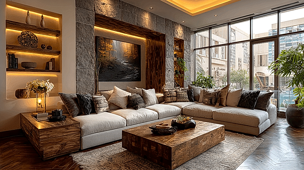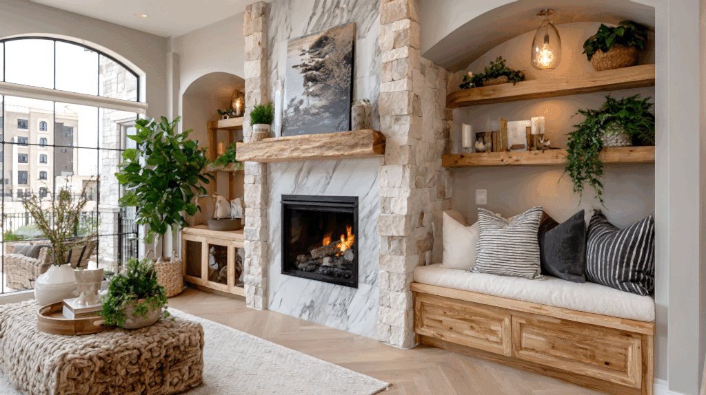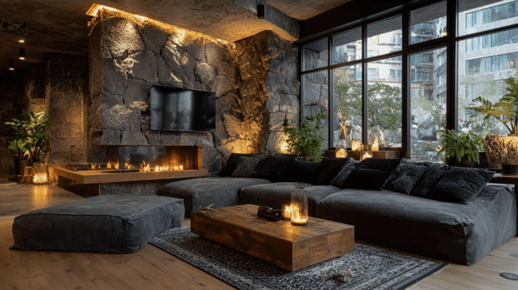 Uygulama İpucu: Duvarı tamamen kaplamak yerine sadece TV’nin bulunduğu alanı taş kaplama ile vurgulamak, daha dengeli bir görünüm sunar.